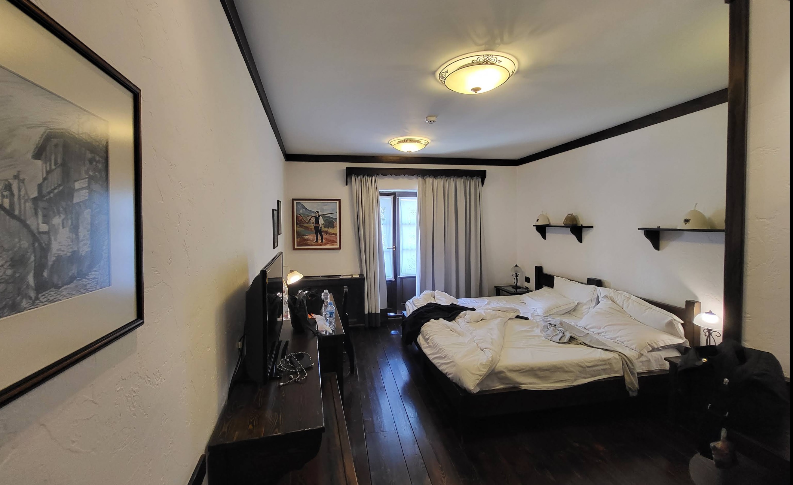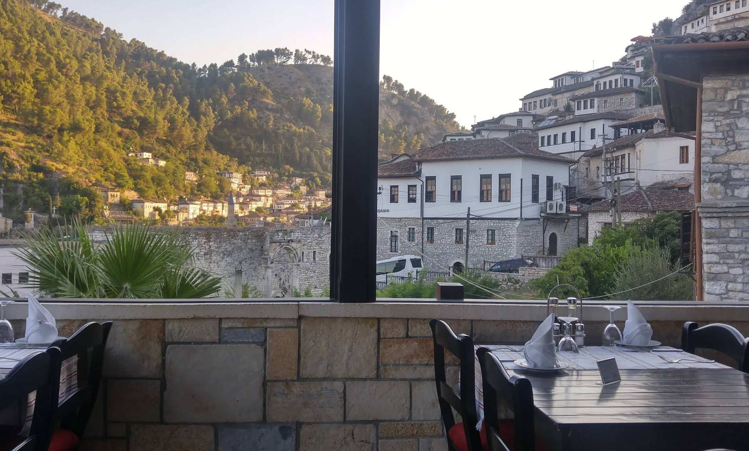 Hotel Mangalemi is -naar mijn bescheiden mening- het beste hotel in Berat en omstreken. Dit type hotel, met al zijn nostalgische aspecten, op het eerste zicht eenvoudig, maar zo luxueus, ligt aan de voet van de beklimming naar het kasteel met het poude centrum en recht tegenover het middeleeuwse stadsgedeelte.