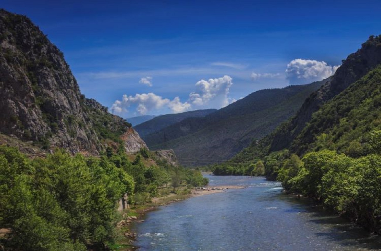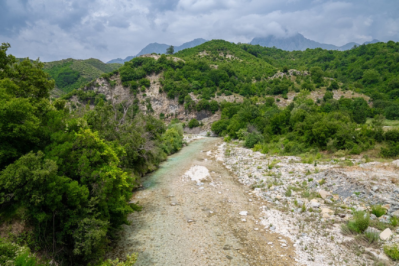 Beneden de Shkumbin rivier lopen bergen en heuvels van het zuidoosten naar het noordwesten, doorkruist door rivieren die in dezelfde richting vanuit Griekenland of het diepe binnenland naar de Adriatische Zee stromen, onderweg diepe kloven uitsnijdend en in het westelijke laagland in de loop van de geschiedenis voor dramatische veranderingen in landschap, economie en bewoning gezorgd hebben. De Shkumbin zelf loop vrijwel recht van oost naar west en dat doen ook alle grote rivieren ten noorden ervan. Een uitzondering is de Zwarte Drin die vanaf het Ohrid meer noordwaarts vloeit langs de flanken van het Korab massief om bij Kukës samen te vloeien met de Witte Drin die vanuit Kosovo Albanië binnenstroomt om dan gezamenlijk hun weg voort te zetten richting Adriatische Zee.